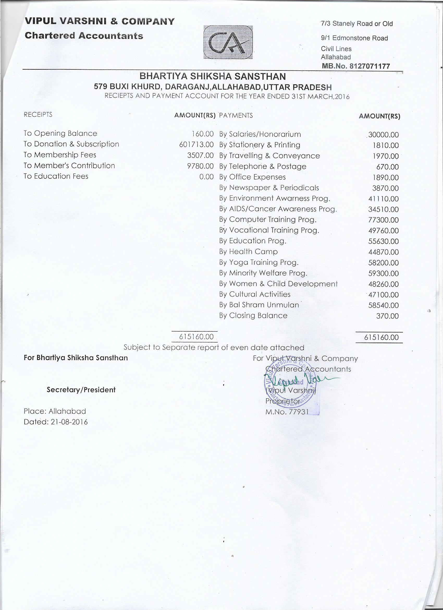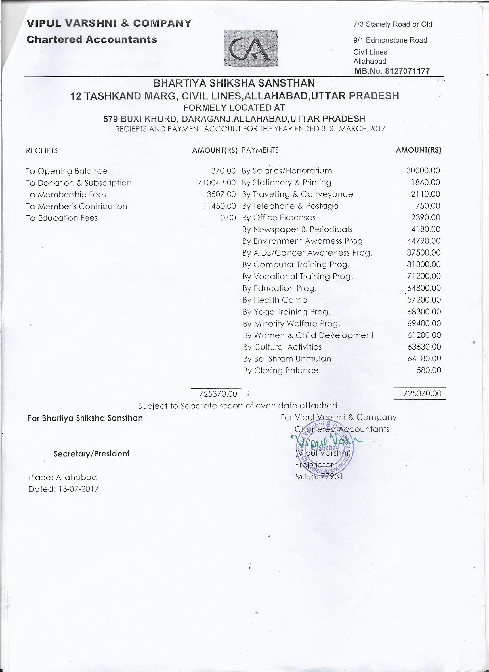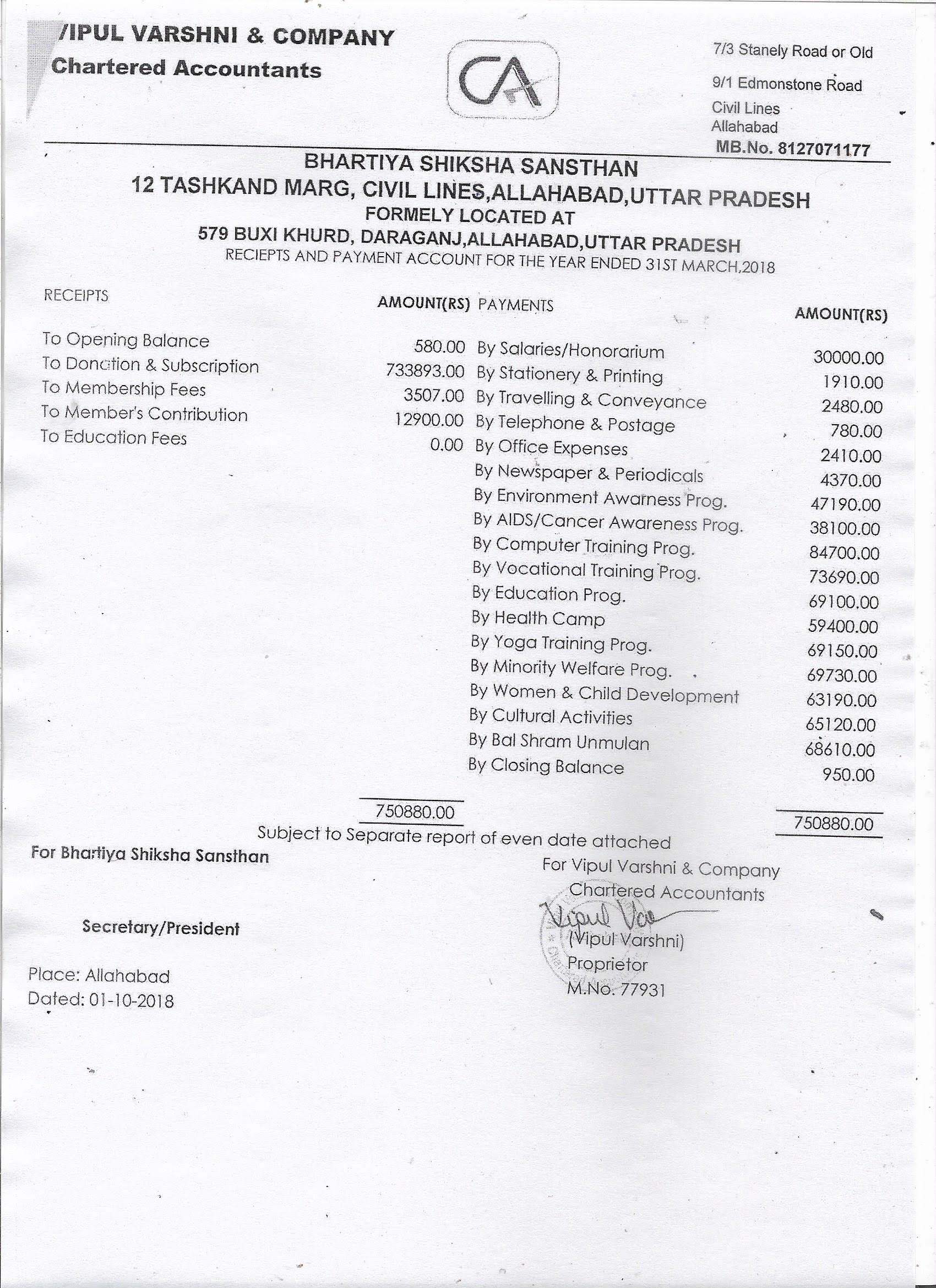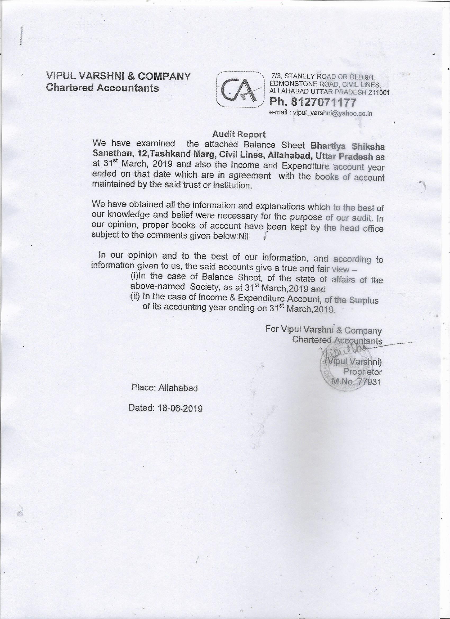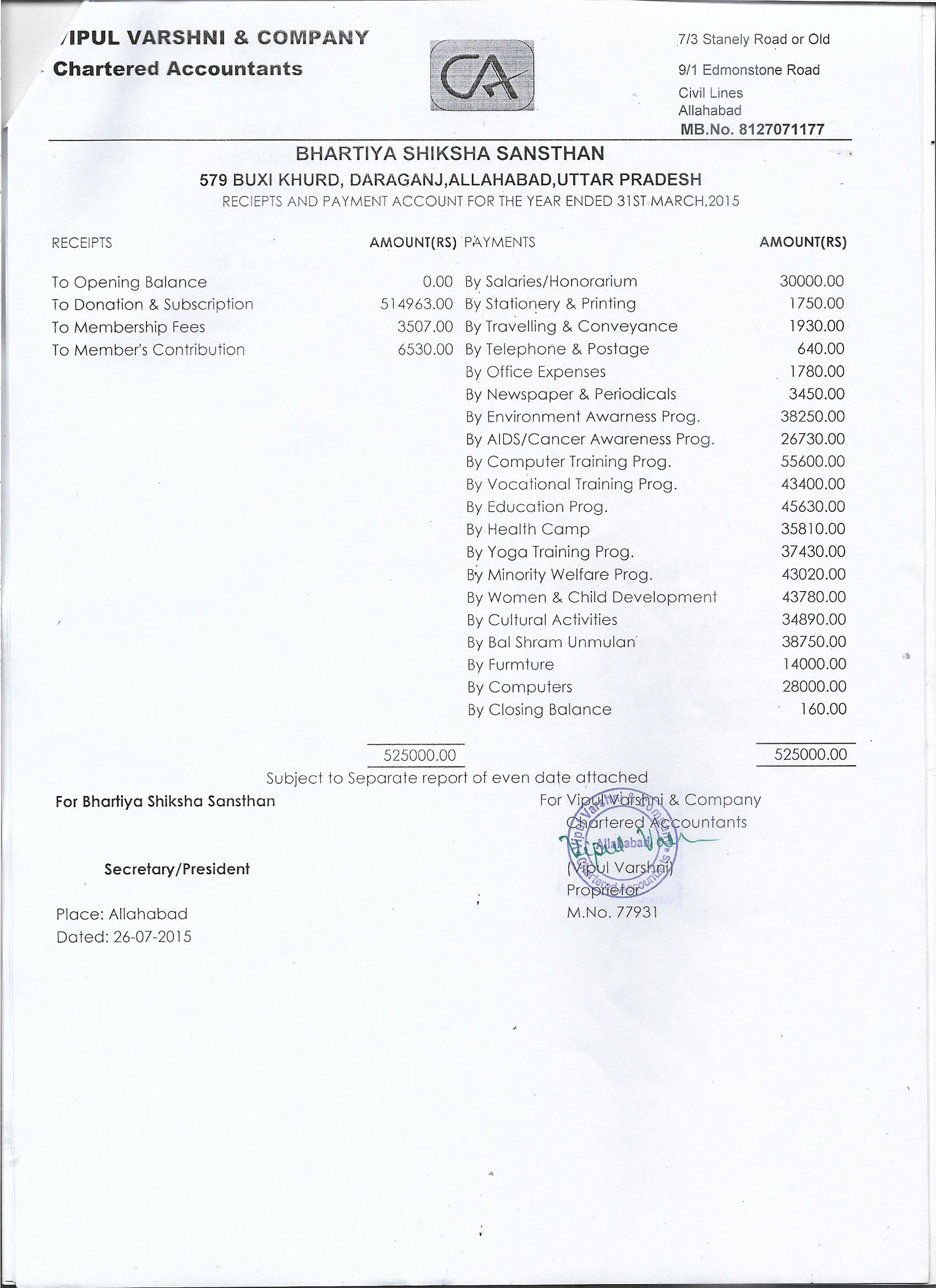 ![]() Receipts And Payment Account For The Year Ended 31st March 2019 |