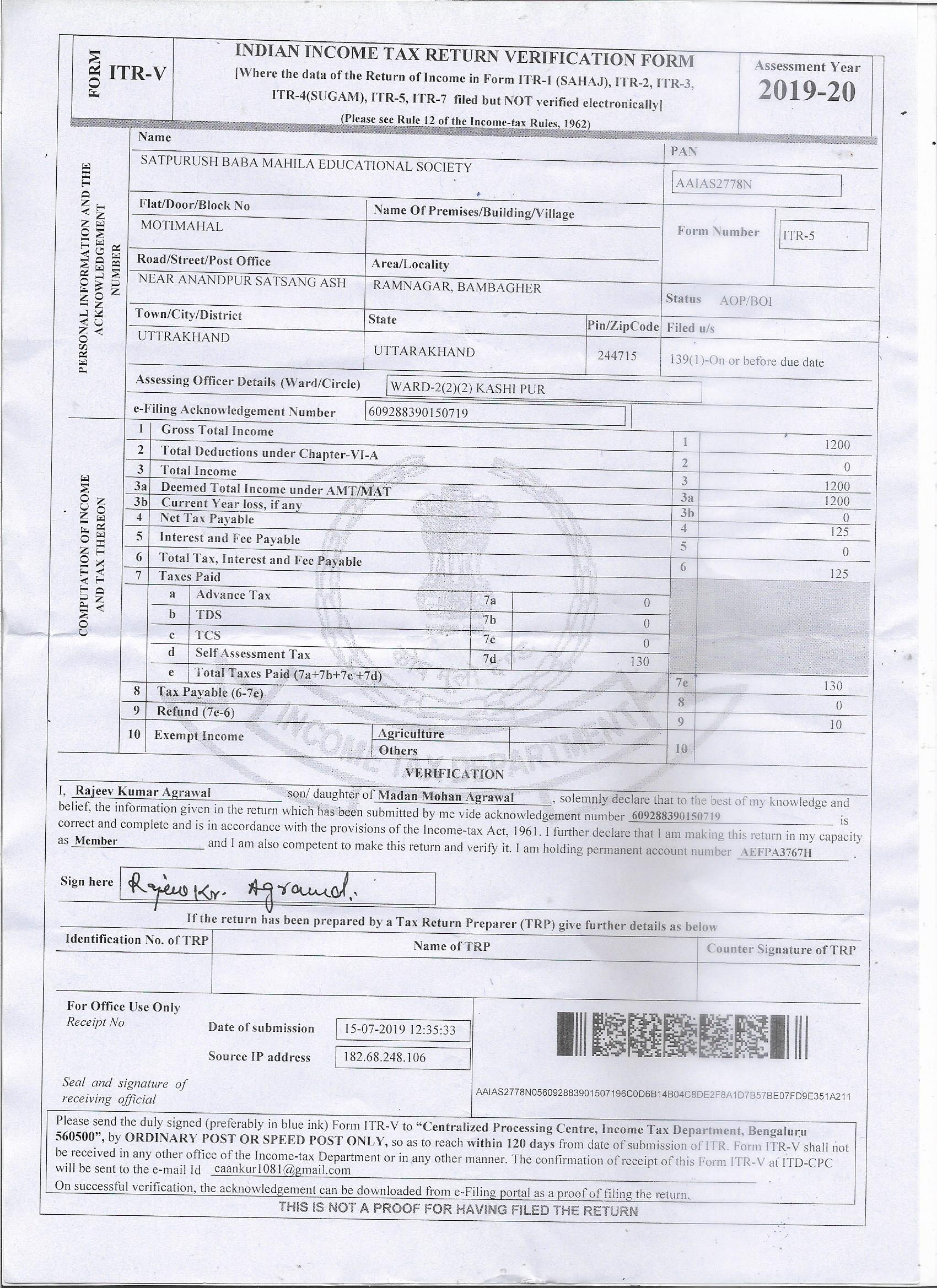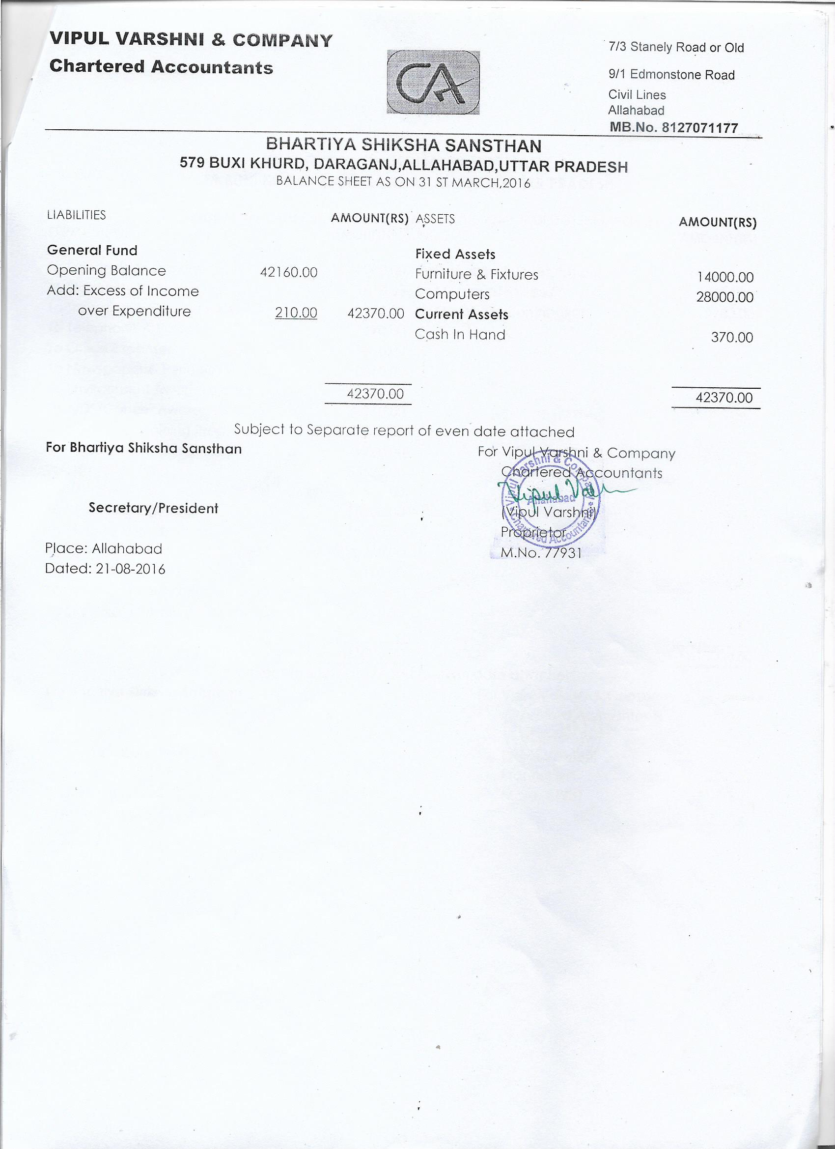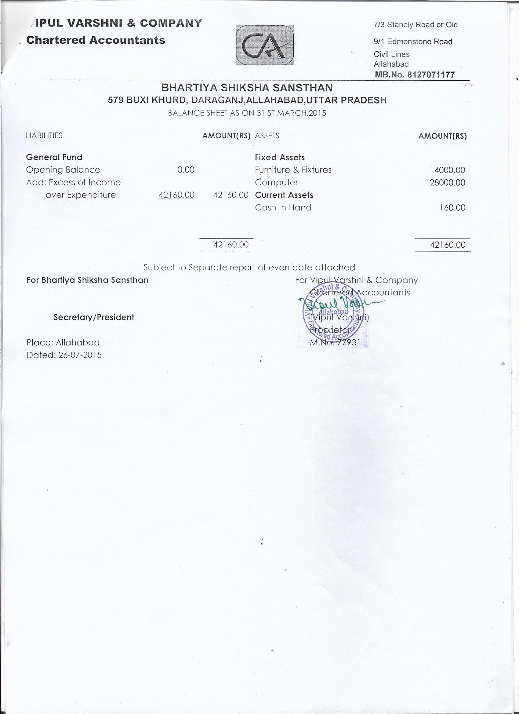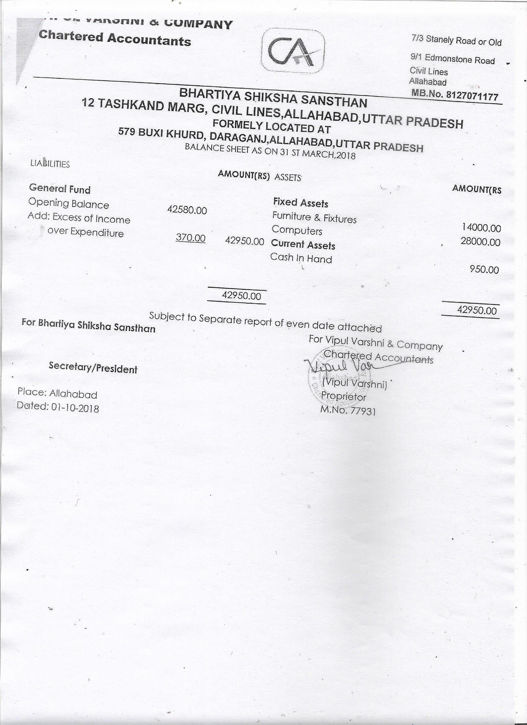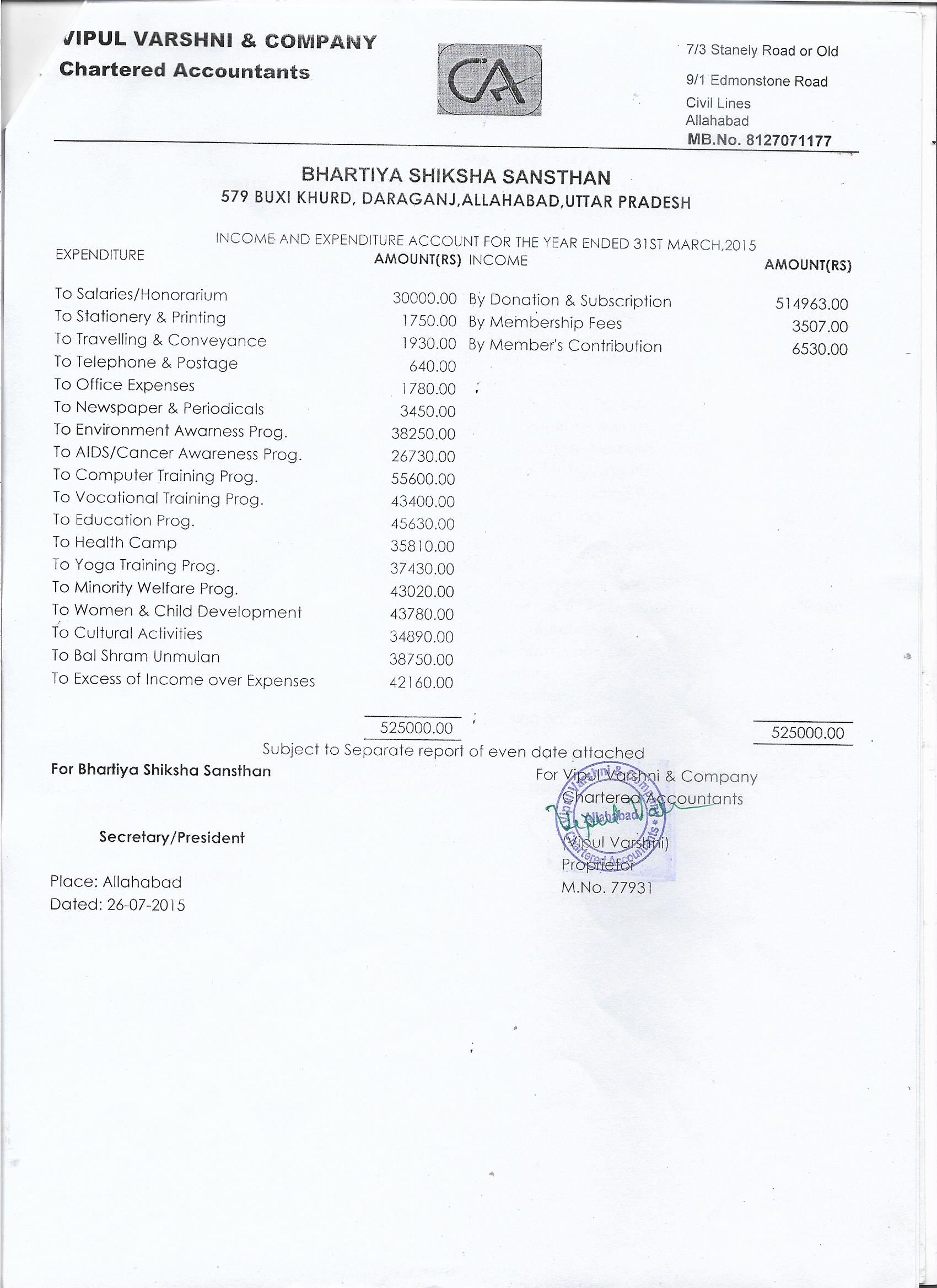 ![]() Receipts And Payment Account For The Year Ended 31st March 2019 |