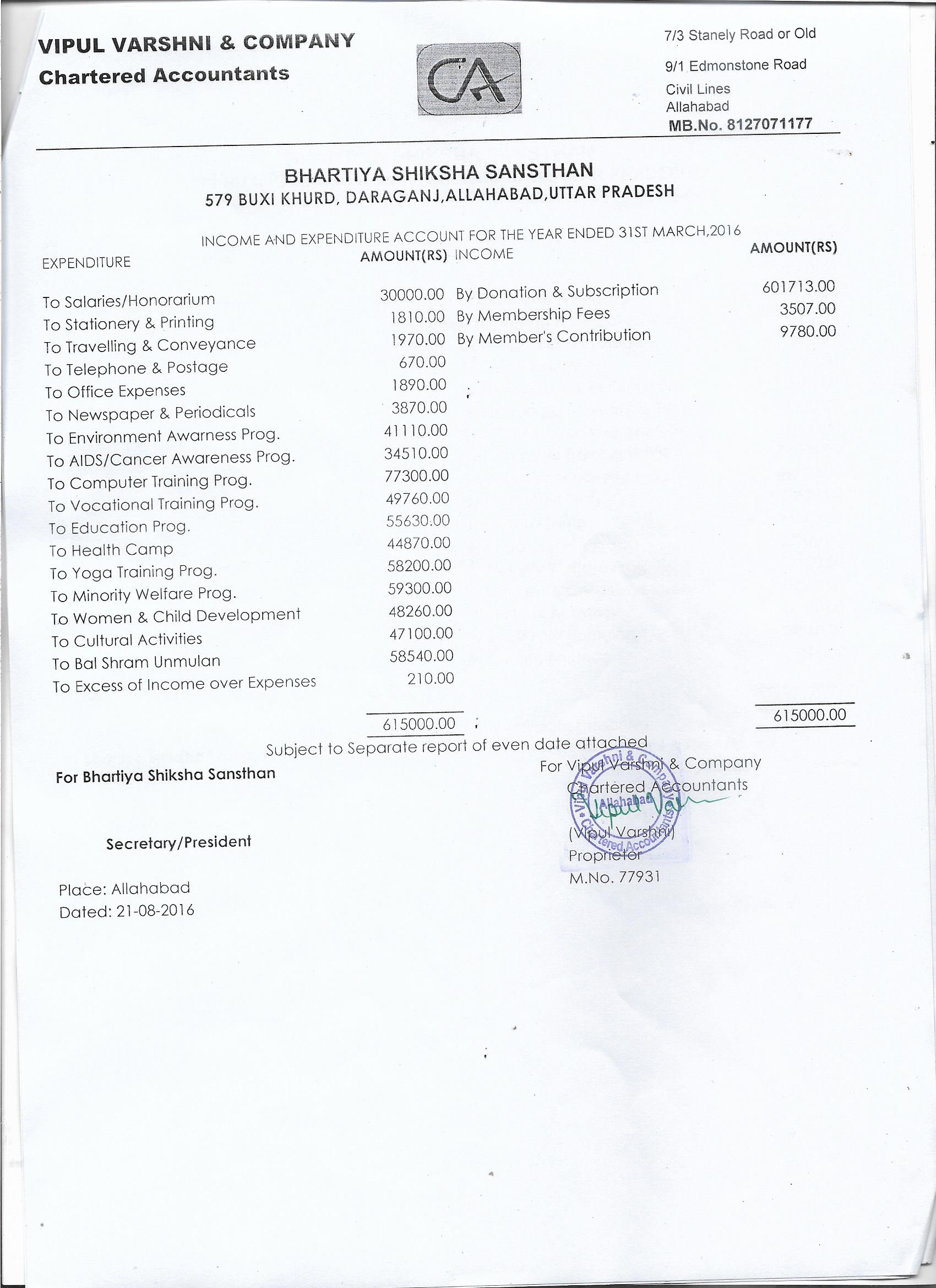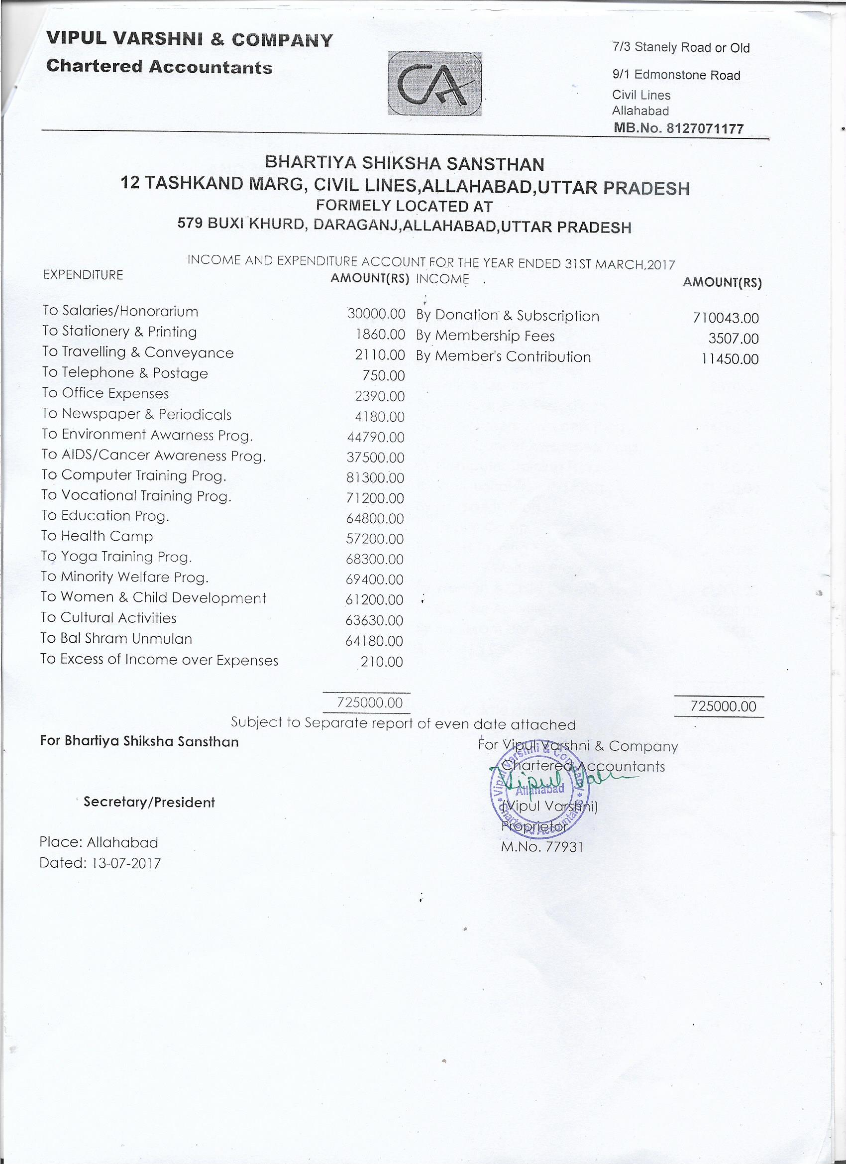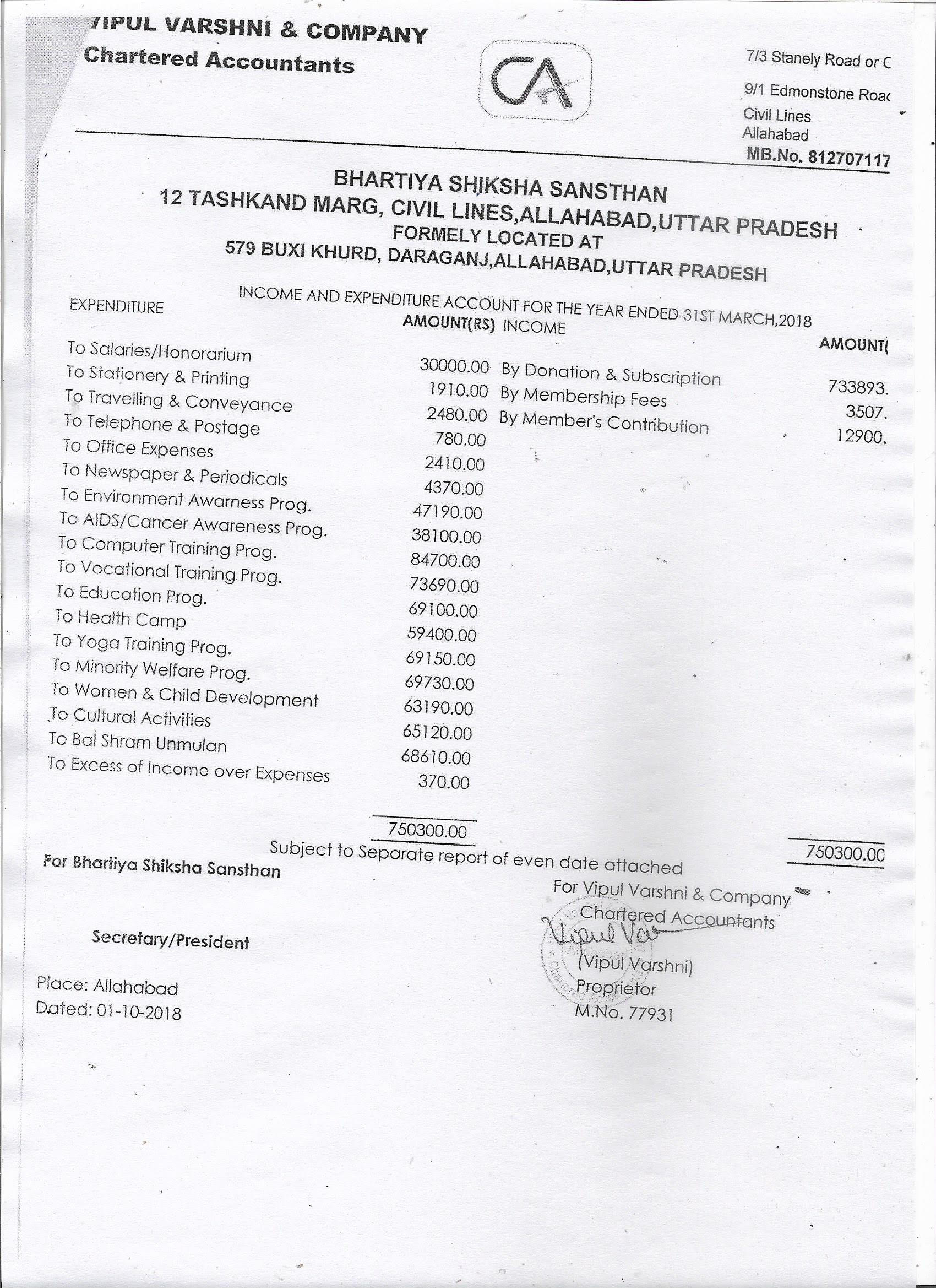 ![]() Income And Expenditure Account For The Year Ended 31st March 2019 |